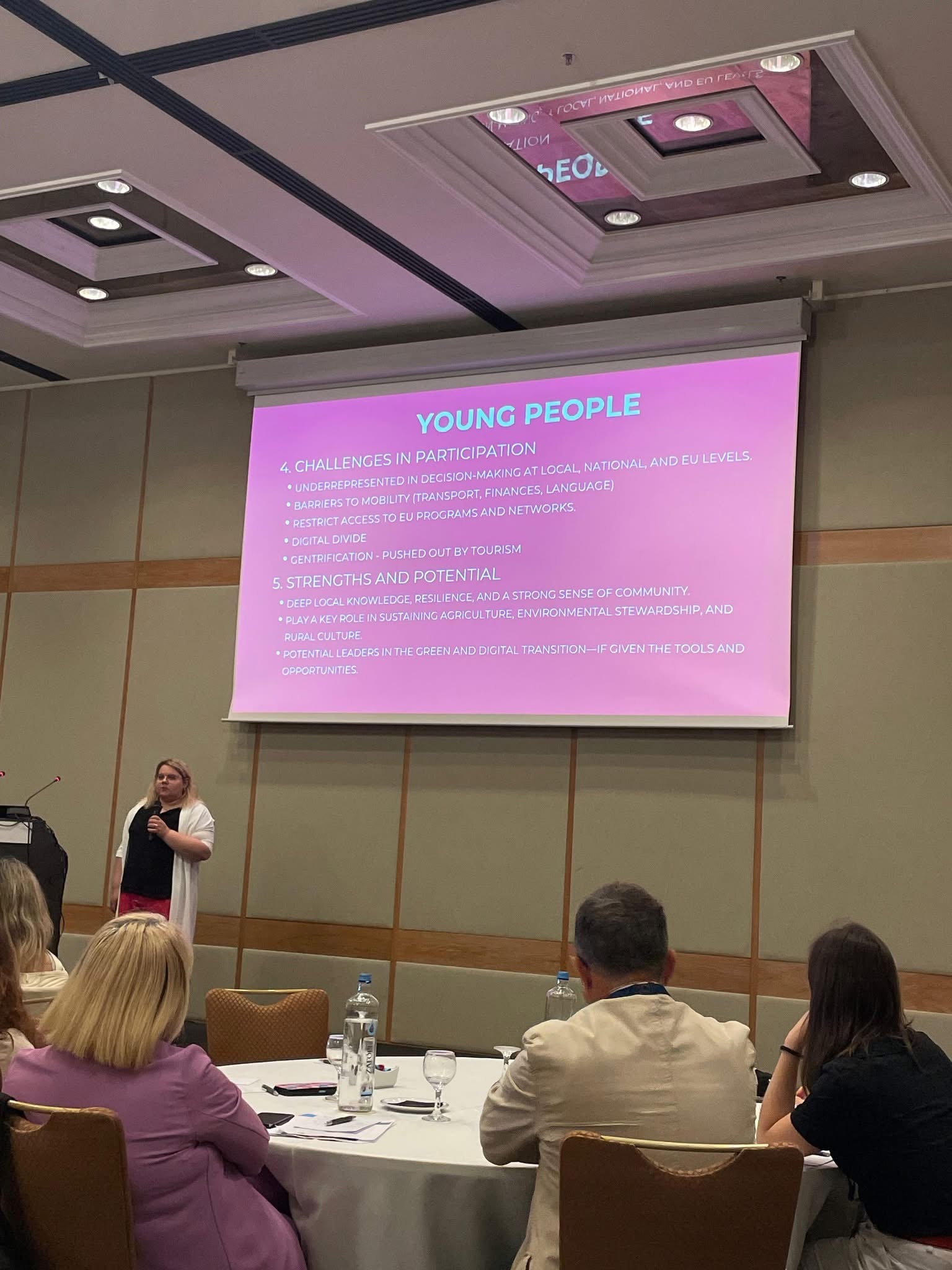 Entre las principales conclusiones del evento destacó la carencia de todos los grupos europeos en relación a la infrarrepresentación de los jóvenes en sus órganos de dirección, así como la escasa implicación de los colectivos juveniles en los GAC. Es fundamental fomentar la participación de los jóvenes detectando organizaciones juveniles y/o jóvenes interesados, porque es esencial escuchar sus ideas frescas y modernas para diseñar un futuro adecuado a sus necesidades, a ellos les corresponderá vivir en el futuro que se planifique.